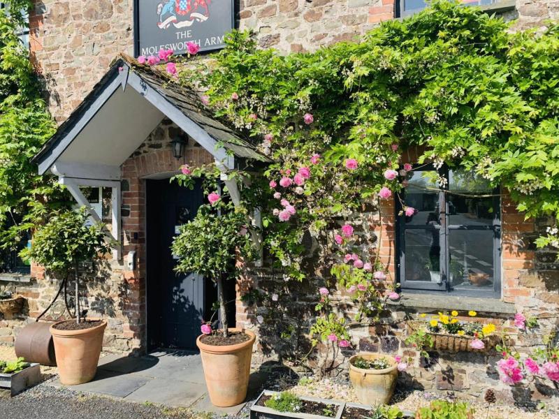 The Molesworth Arms is situated in the square in the sleepy village of Pyworthy, 10 miles in land east of Bude near all the beautiful coastal beaches of Cornwall and in close reach of our suppliers.