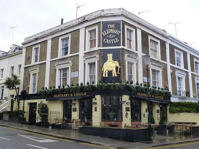 The Elephant and Castle in London is a bar, famous for its cask ales and premium gins, serving breakfast, seasonal pub food and afternoon tea.