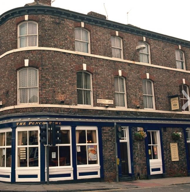 An existing pub taken over by Wetherspoon, The Punch Bowl has been at the corner of Blossom Street and Nunnery Lane since 1770. The sign of the punch bowl dates from the end of the 17th century, when it became the sign of the Whig party. Punch was the fashionable drink favoured by the Whigs, while the Tories preferred more traditional drinks, like claret.